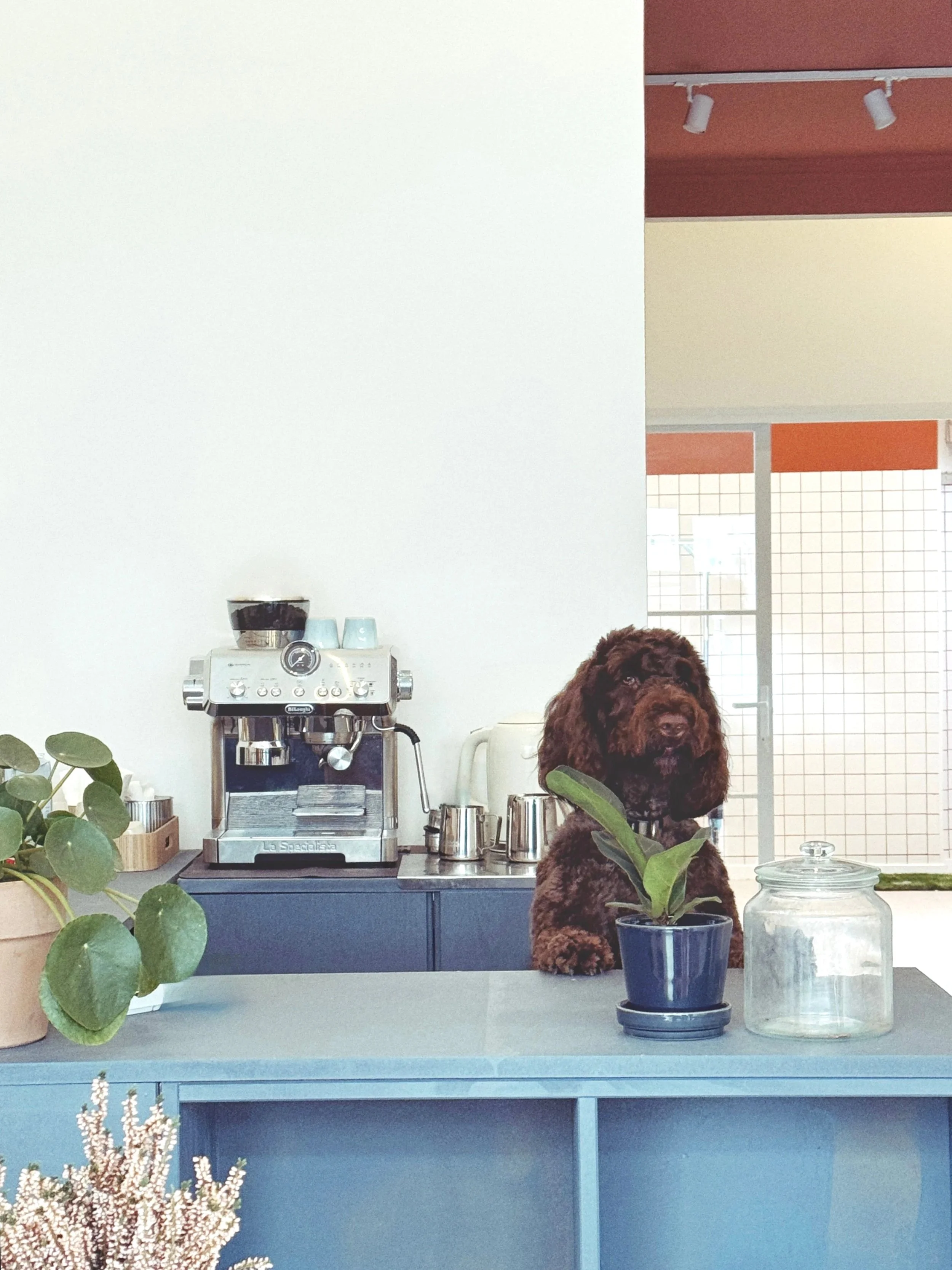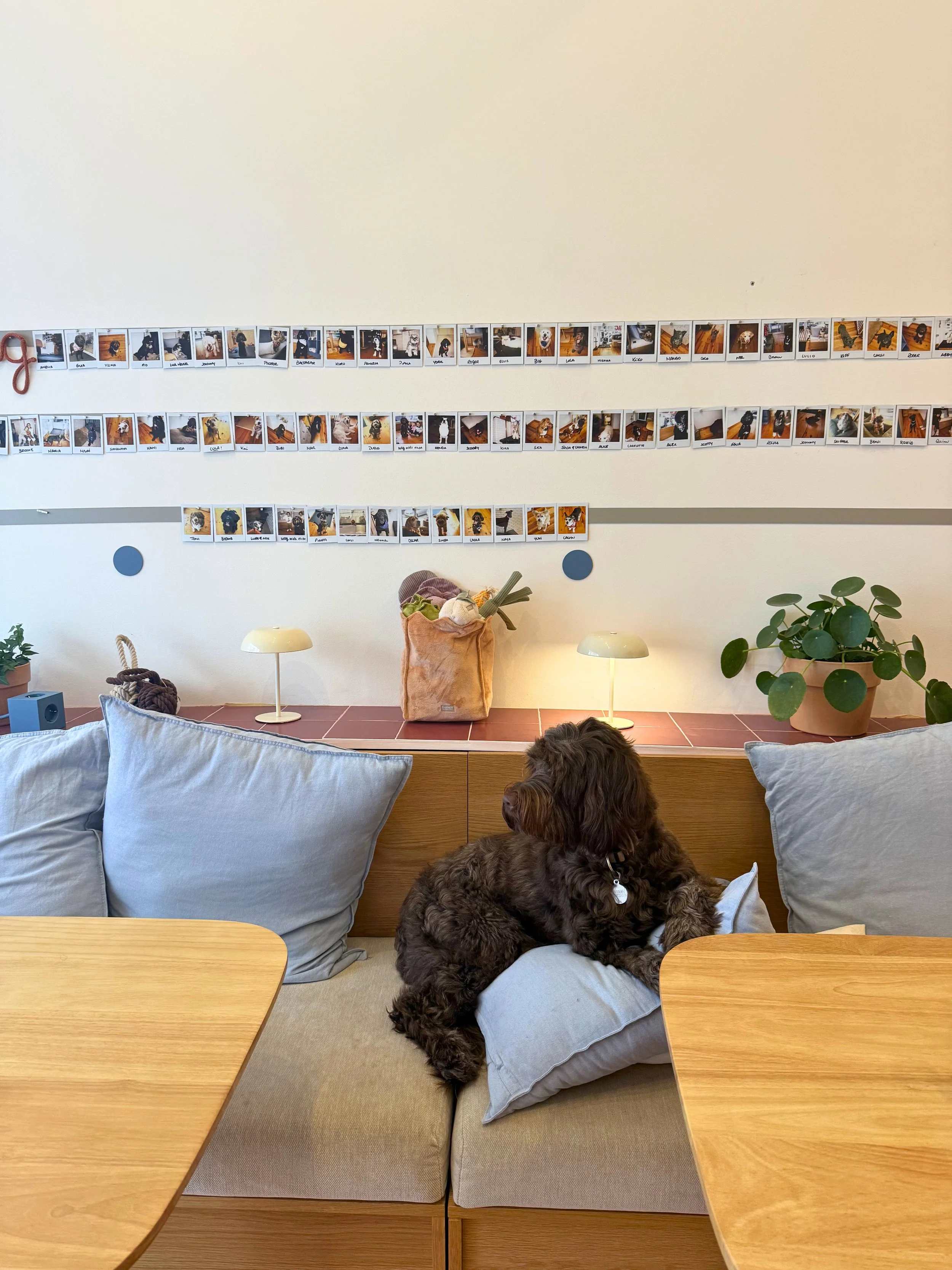 Um espaço de café calmo pensado para descontrair, pôr a conversa em dia ou trabalhar enquanto cuidamos do seu cão.